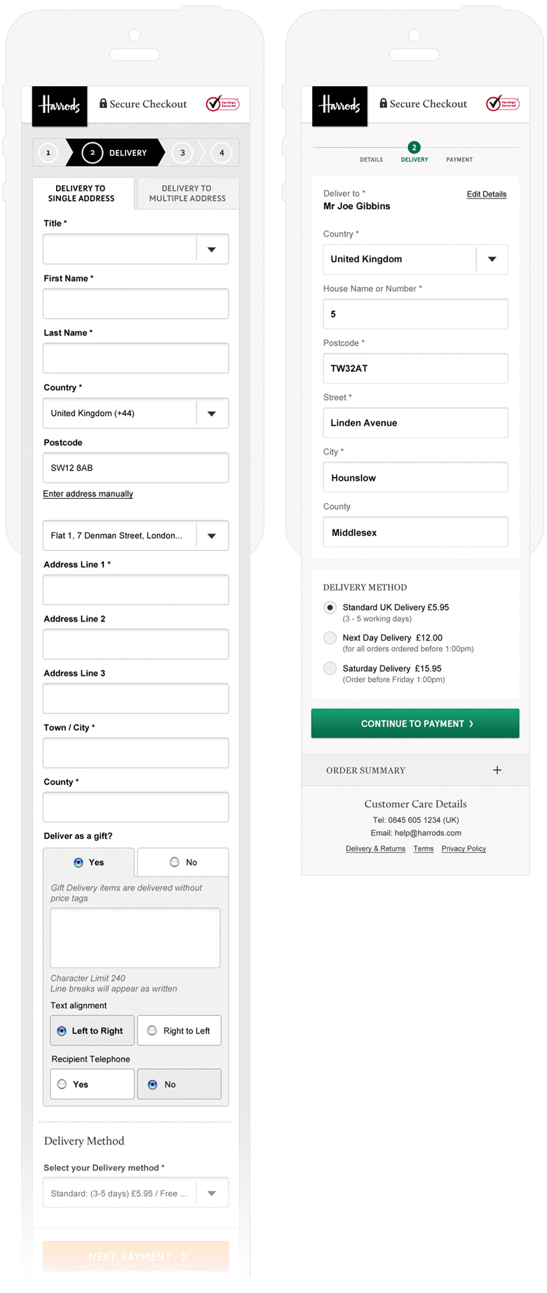 Based on the User type, there are 3 different types of checkout journeys on Harrods.com: