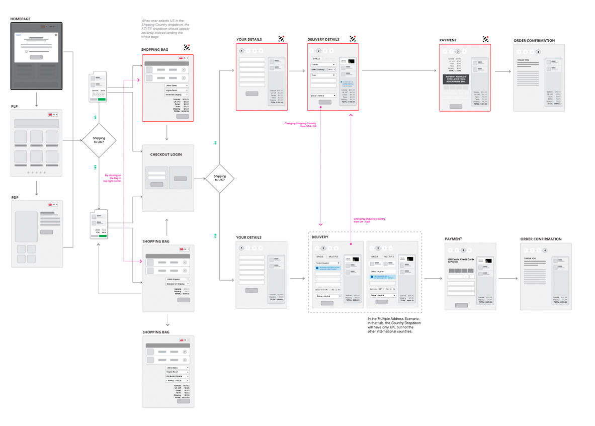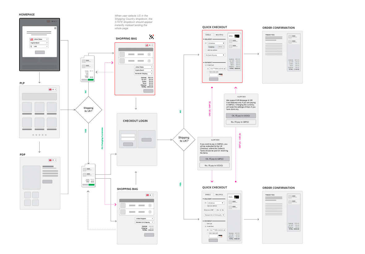 Showing the flow of a user buying a product on the site and doing a Guest User Checkout after Borderfree Implementation.