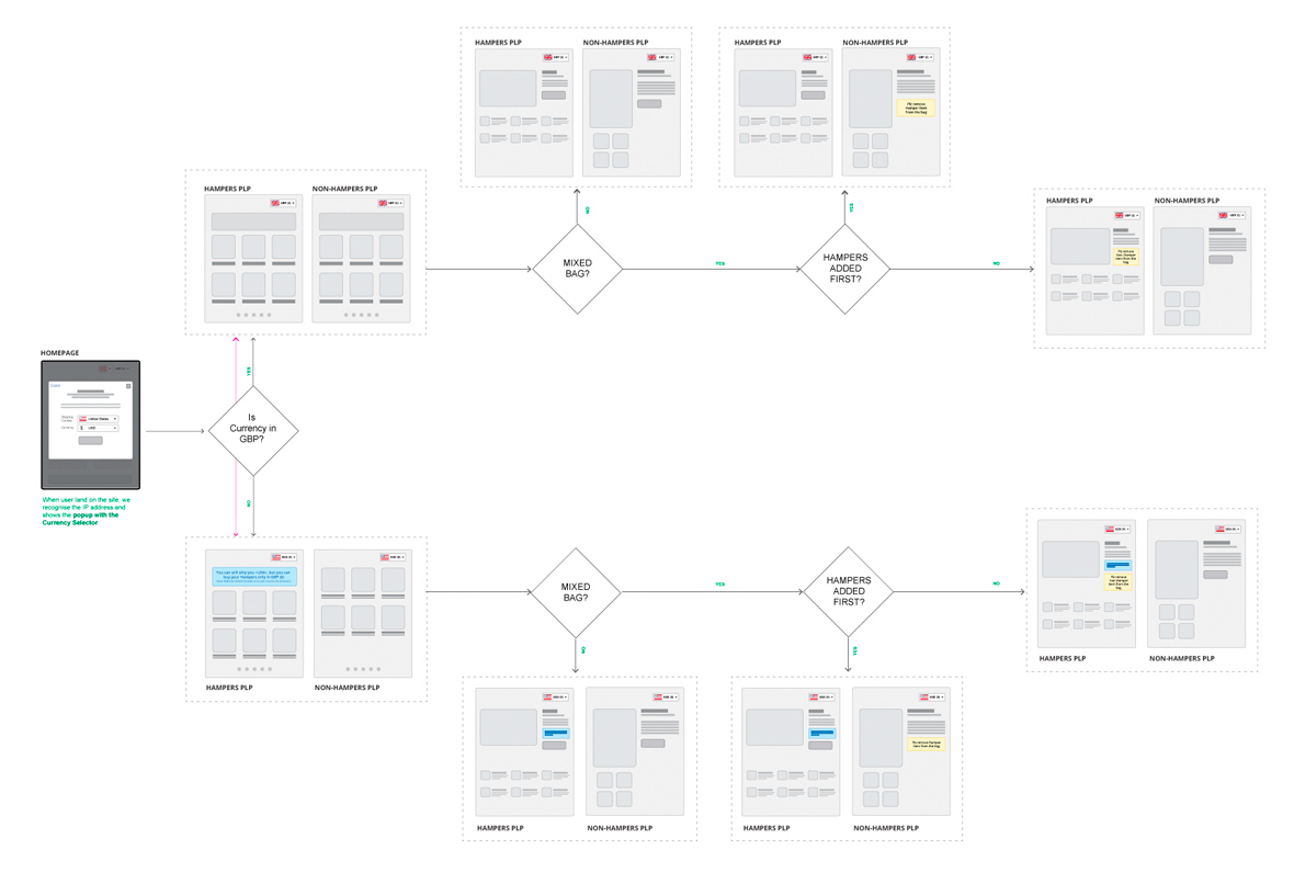 Showing the flow of a user browsing Hampers after Borderfree Implementation on the site.