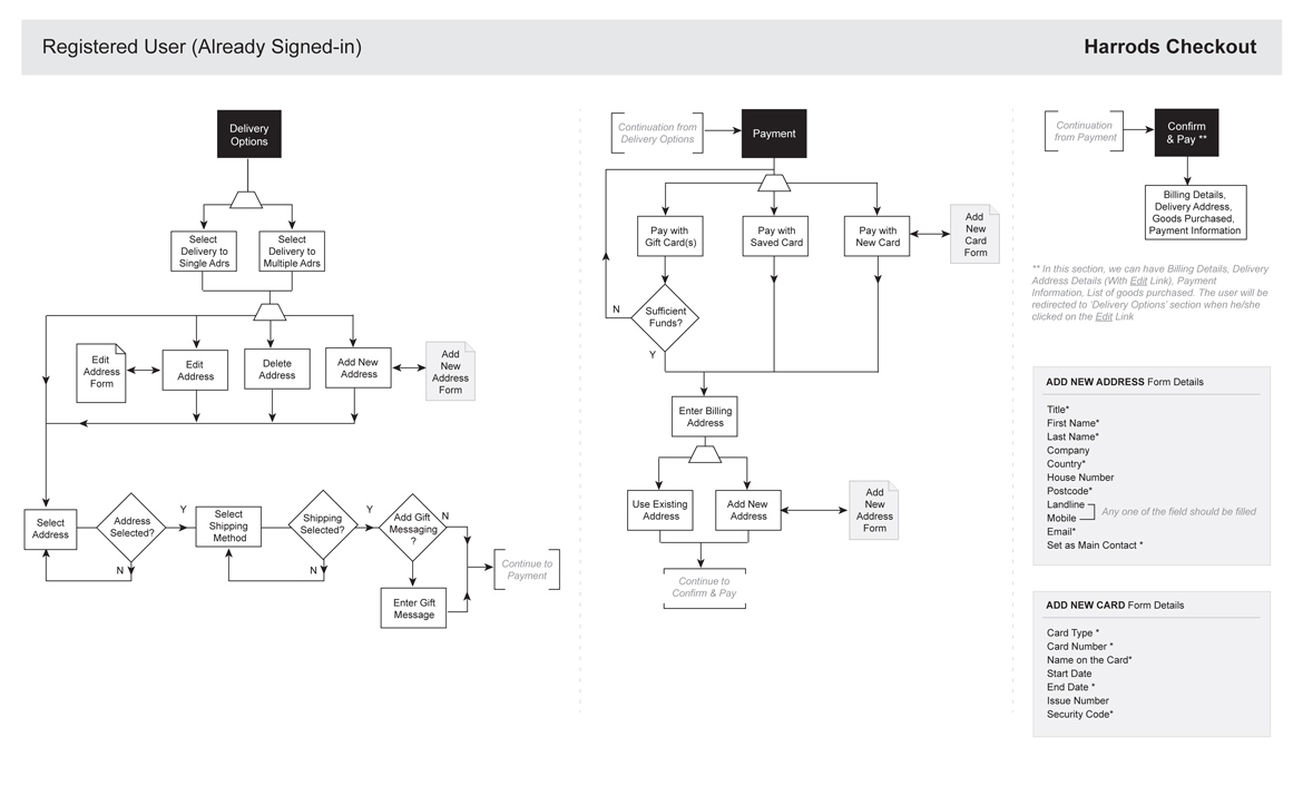 Showing the flow of the Registered User Checkout journey who signed in as soon as they land on the site and started their browsing